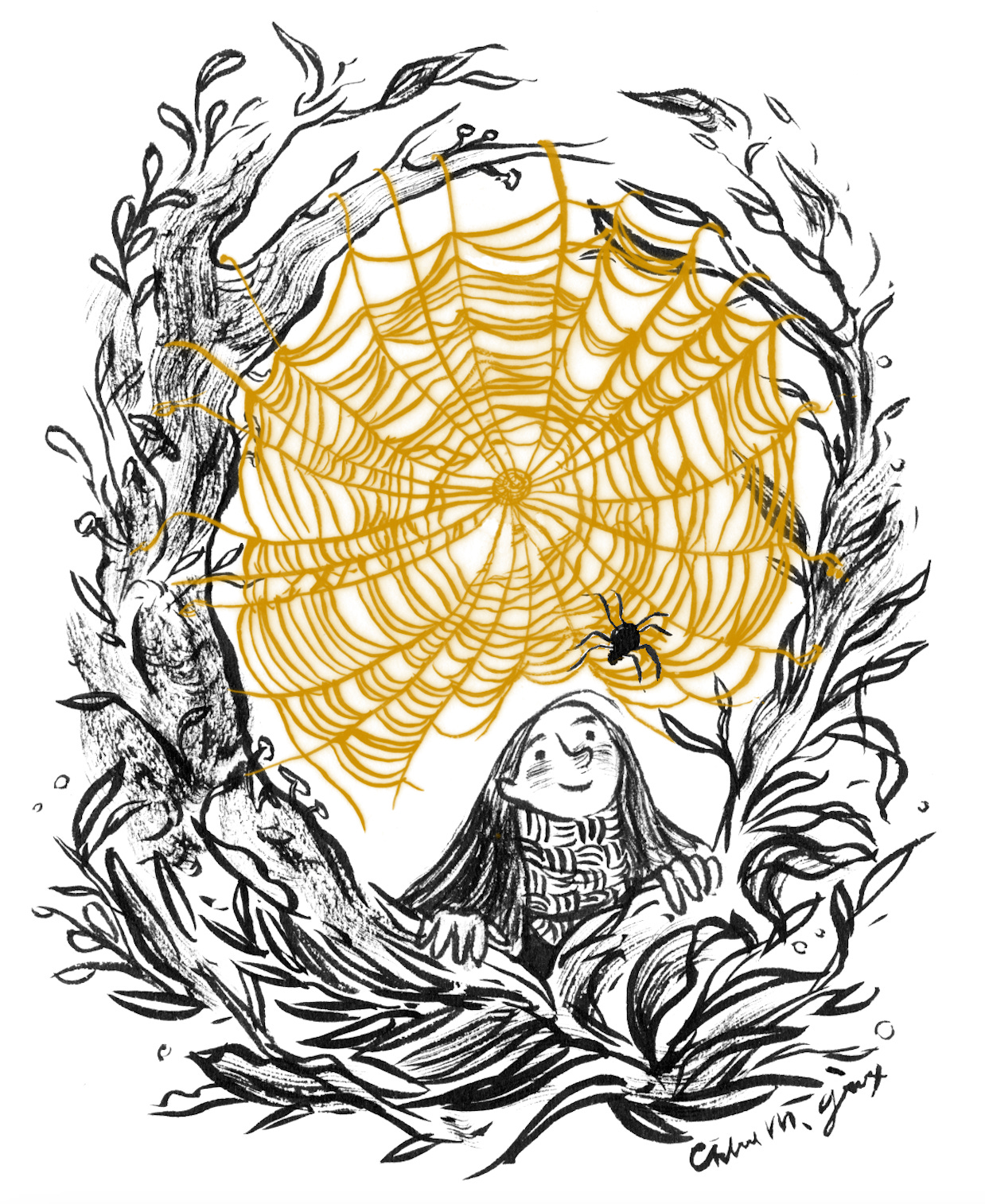 So that’s what I’m doing, letting my web slowly expand over time, and hopefully, more and more adorned with glimmers. In honor of that, I pulled this older illustration of mine from the archive: